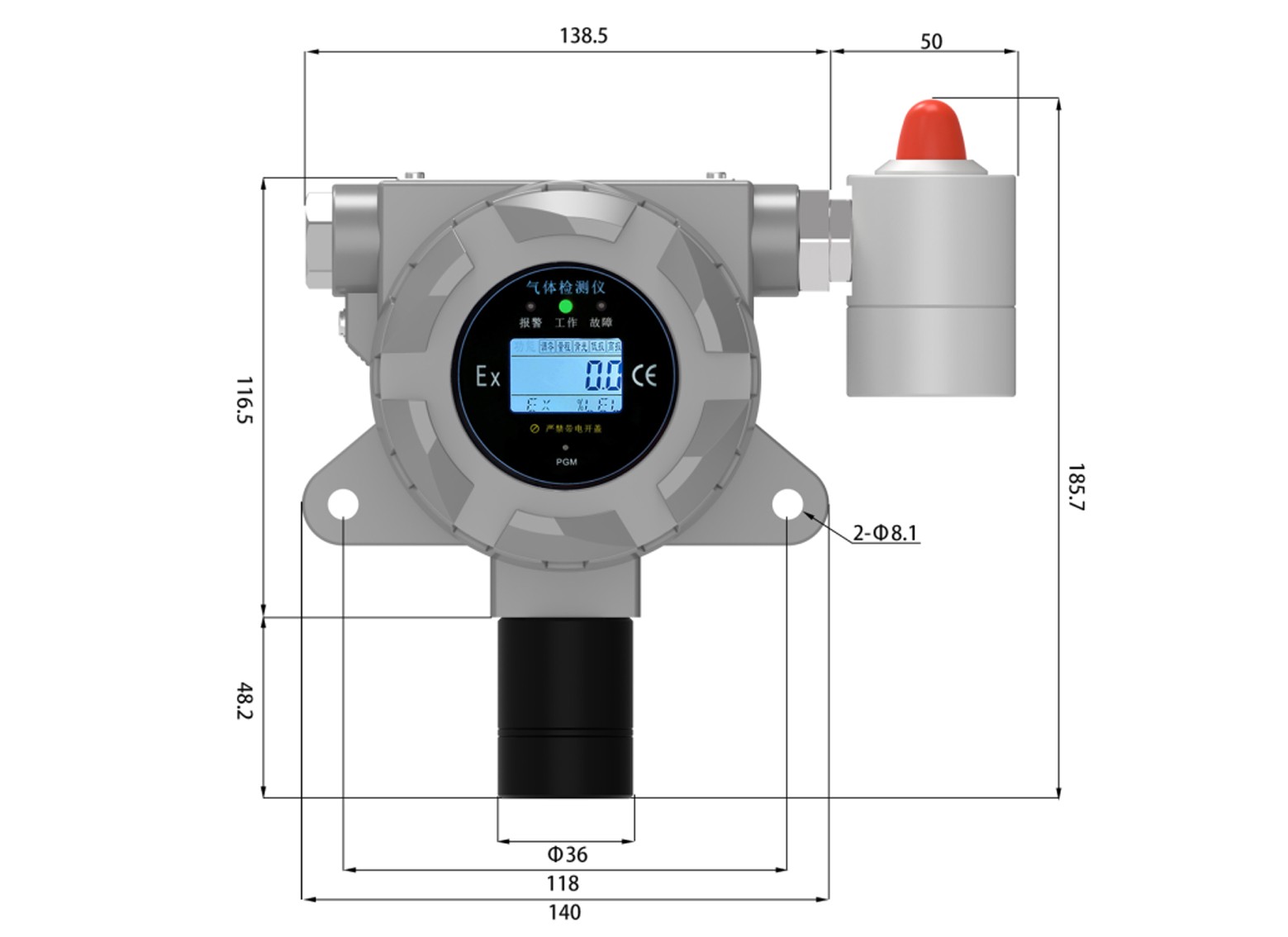 ●鋁合金鑄體防爆外殼,壽命長達(dá)五年以上,堅固耐用;