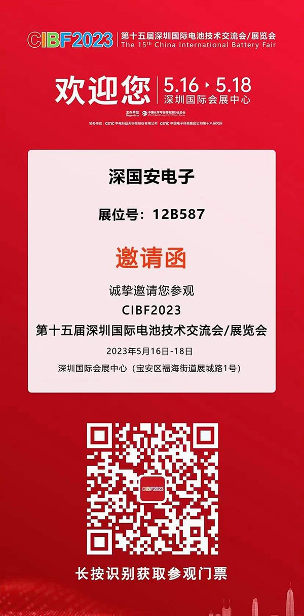 2023年5月16至18日,(CIBF2023)“第十五屆深圳國際電池技術交流會/展覽會”將于深圳國際會展中心(寶安新館)隆重舉行。深國安作為鋰電行業氣體環境安全檢測專家,誠邀各...