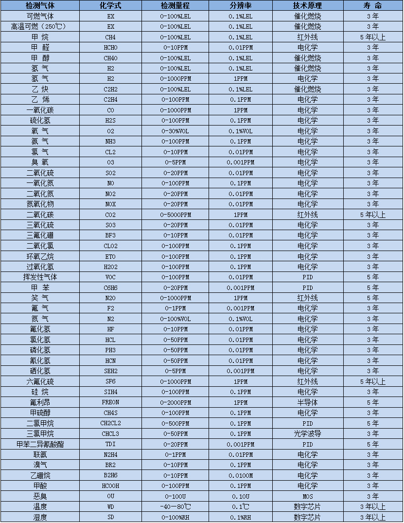 目標氣體可進行任意組合、技術(shù)原理不限、檢測范圍不限
