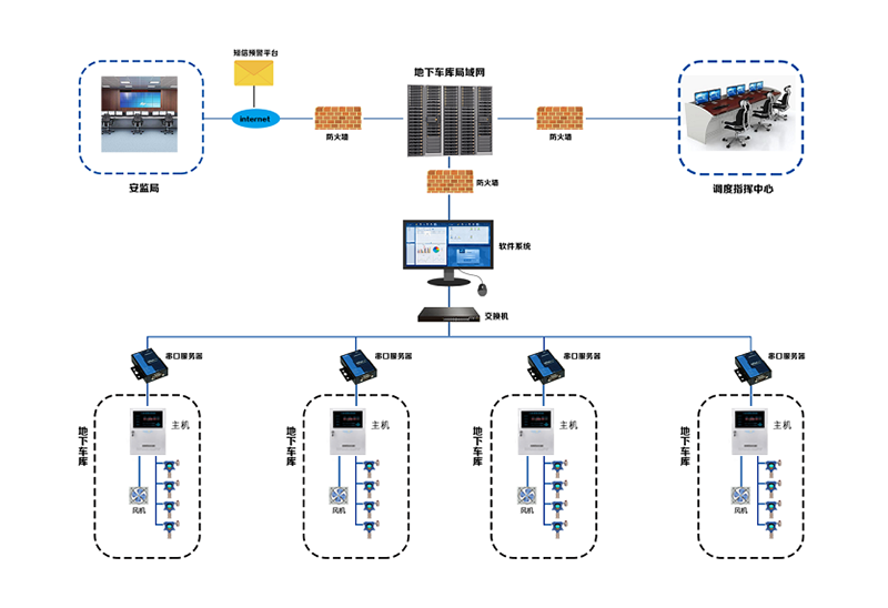 1.區(qū)域性實(shí)時(shí)檢測(cè)地下車(chē)庫(kù)環(huán)境中的一氧化碳濃度值,定期排風(fēng)保證車(chē)庫(kù)內(nèi)一氧化碳濃度低于危害水平,避免人體受到危害。